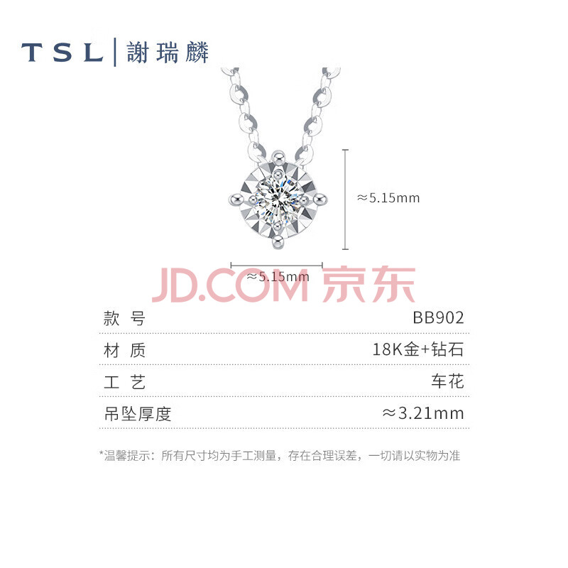 商品相册:谢瑞麟(TSL)18K金项链镶嵌钻石创意简约挂坠颈饰BB902(63265)第1张/共5