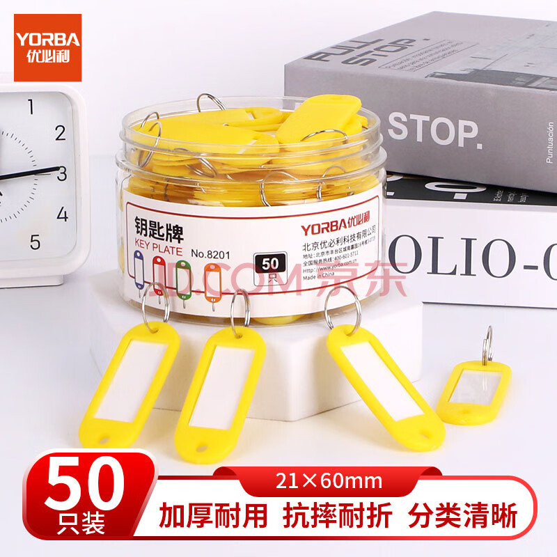 商品相册:优必利 钥匙牌 加厚手提钥匙号码牌标签分类管理钥匙扣 洒店宾馆房东大钥匙挂件 50只/桶 8201黄色第