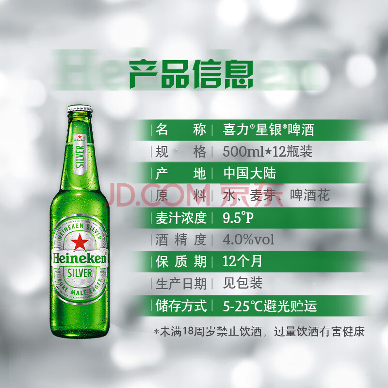 商品相册:喜力星银啤酒 500ml*12瓶整箱装 全麦酿造 喜宴礼酒踏春送礼踏春送礼第