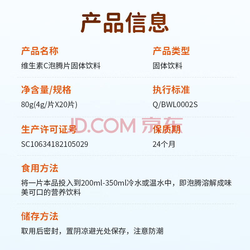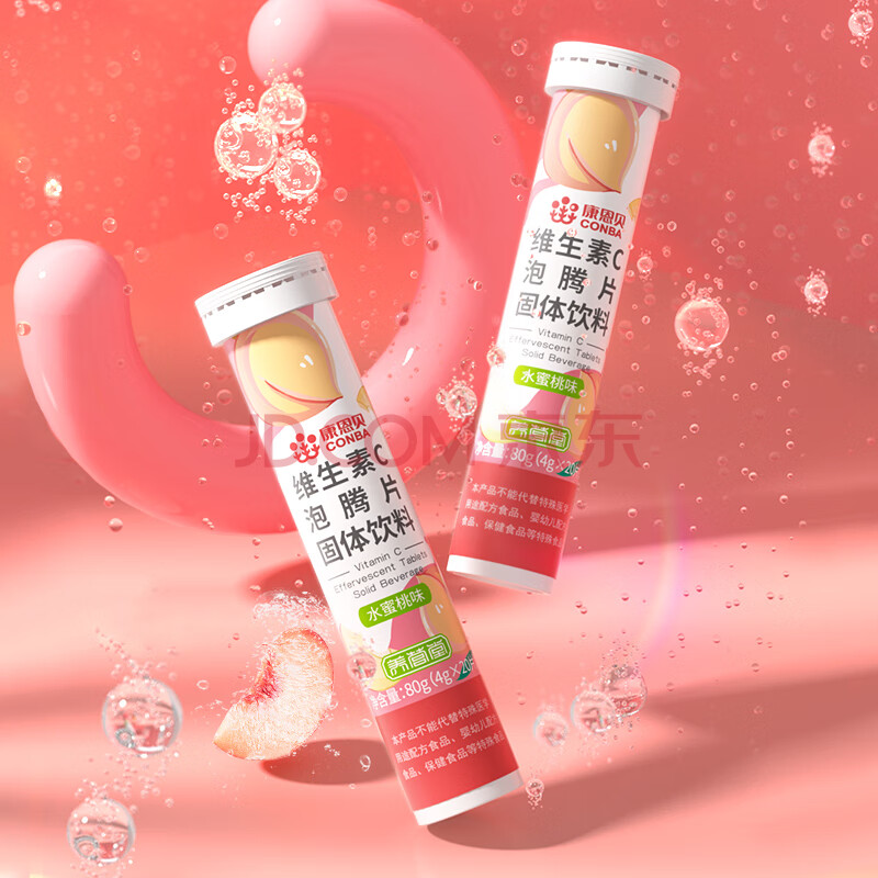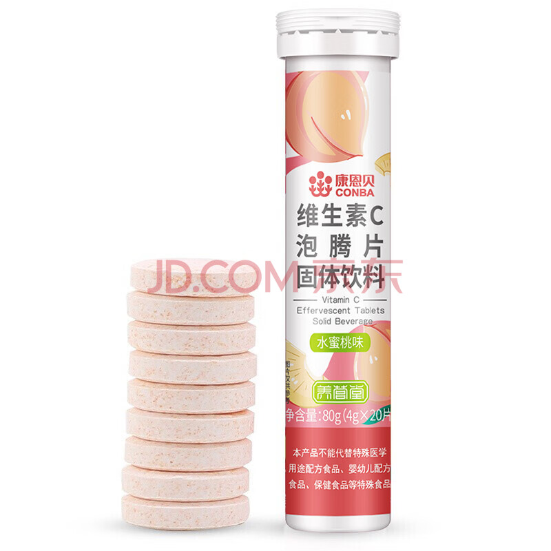 商品相册:康恩贝 维生素c泡腾片4g*20片 固体饮料果味维c泡腾片VC水蜜桃味第