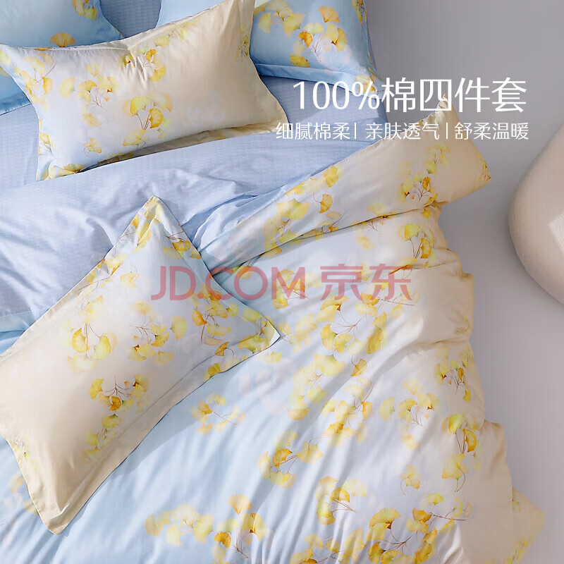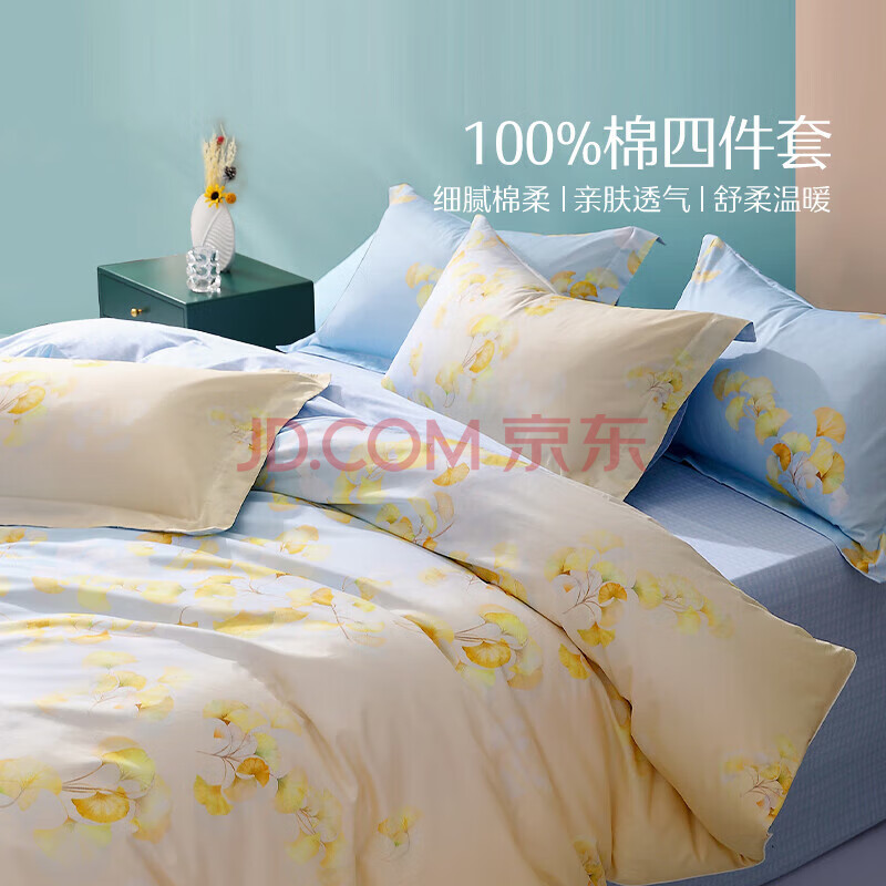 商品相册:水星家纺四件套床上纯棉100%全棉床单四件套单双人被套枕套1.5米床遥叶第