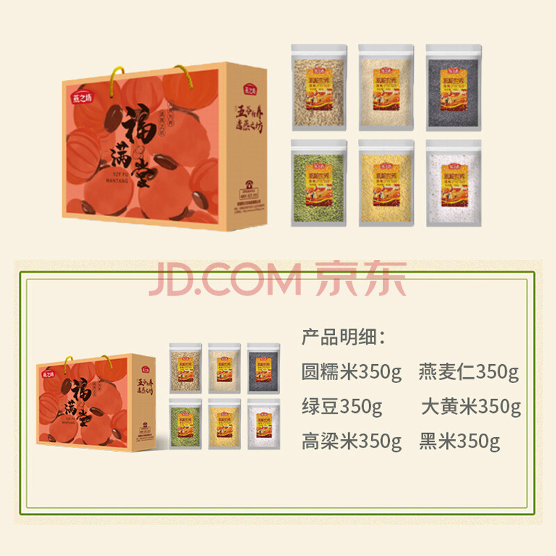 商品相册:燕之坊 福满堂2100款 圆糯米燕麦仁绿豆大黄米高梁米黑米 杂粮礼盒2100g 营养美味第