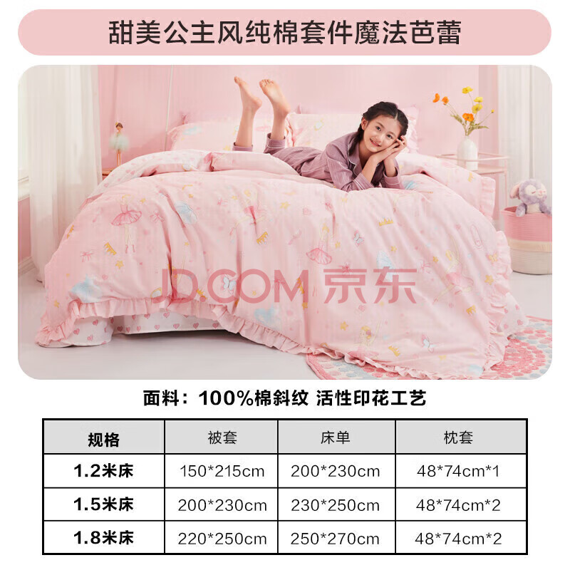 商品相册:罗莱儿童四件套 母婴A类100%精梳全棉被套床单枕套纯棉被罩 200*230第