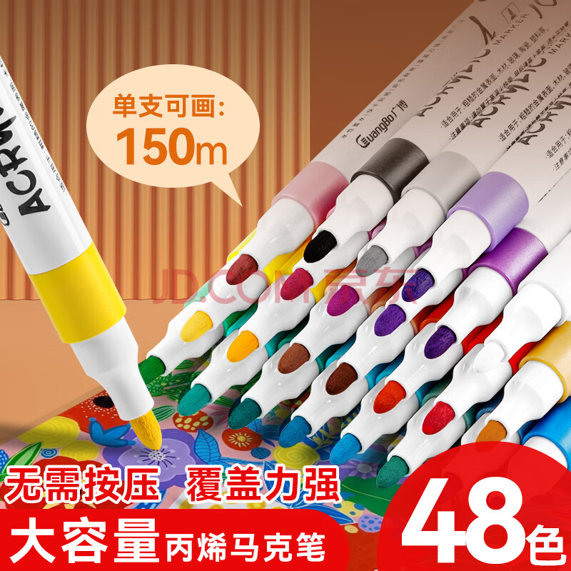 商品相册:广博48色水性丙烯马克笔 美术生专用绘画马克笔 单头防水速干涂鸦咕卡画笔DIY颜料H02273礼物文具第