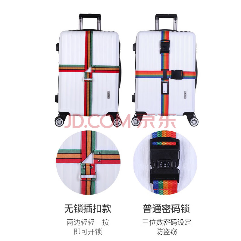 商品相册:易旅十字打包带密码锁 行李箱安全绑带 七彩款带密码锁第
