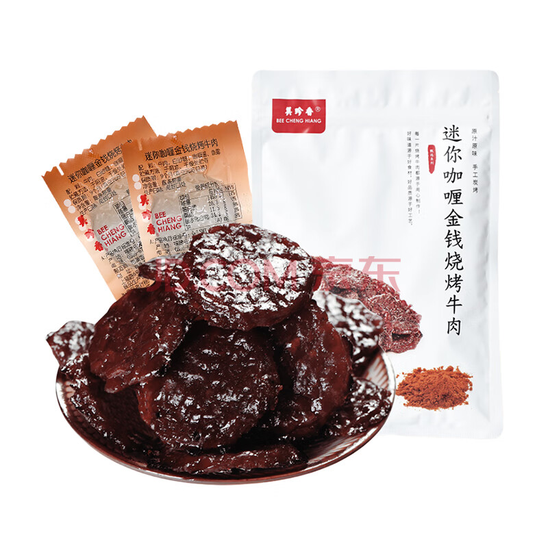 商品相册:美珍香(BEE CHENG HIANG) 迷你咖喱金钱烧烤牛肉100g 牛肉干肉脯烧烤肉干类休闲零食小吃第