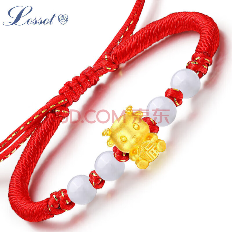 商品相册:Lossot足金十二生肖羊黄金转运珠手链5D硬金羊本命年手链红绳生日礼物第