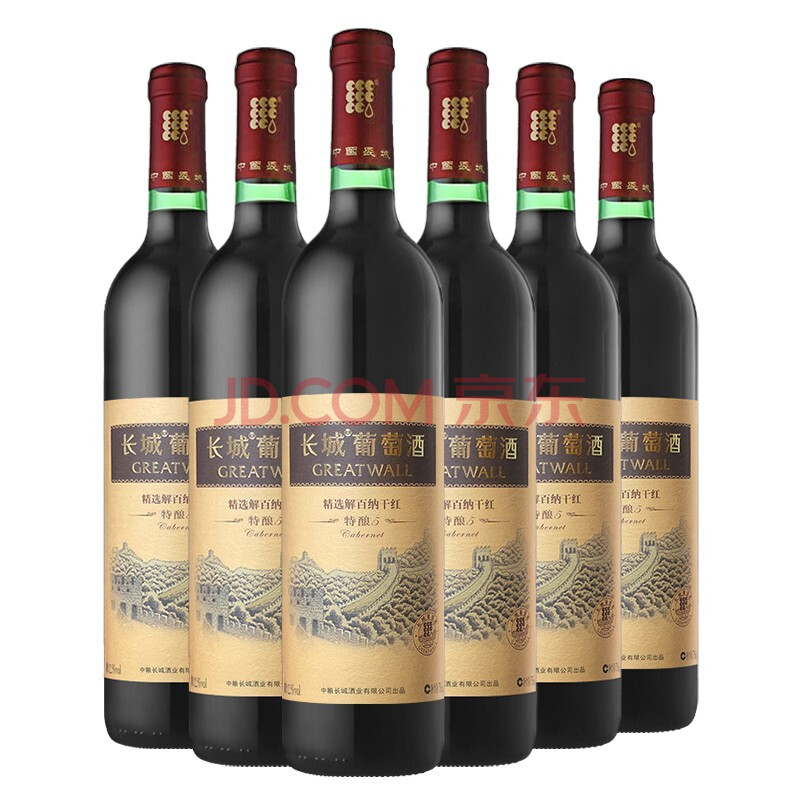 商品相册:长城特酿5解百纳干红葡萄酒 750ml*6 整箱装红酒自营热门商品第