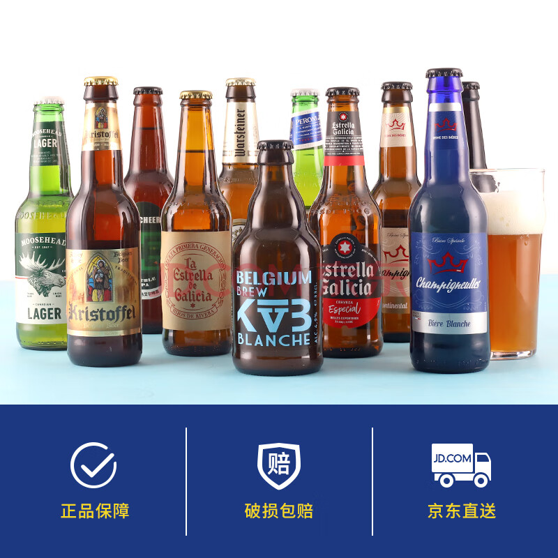 商品相册:Easycheers精酿啤酒组合11支礼盒+酒杯 多国进口白啤/修道院/IPA 啤酒整箱第
