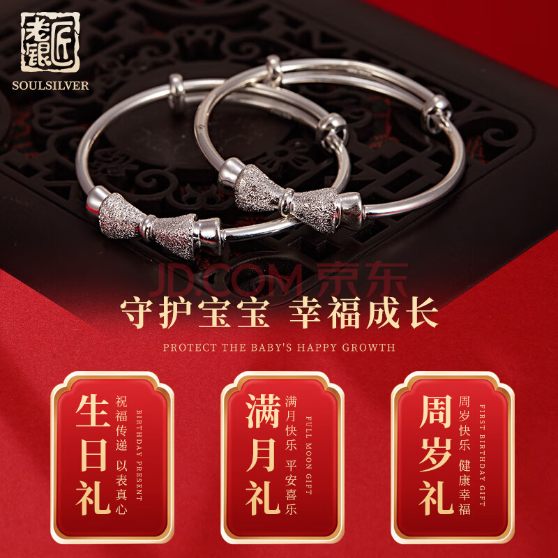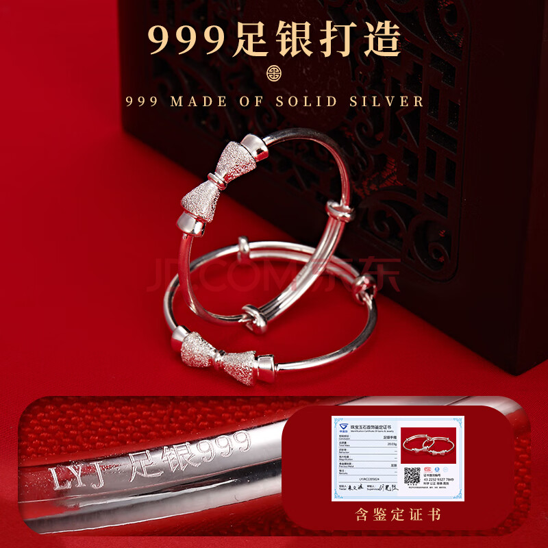 商品相册:老银匠蝴蝶结宝宝银镯999足银甜美可爱满月周岁礼物新生婴儿银手镯第