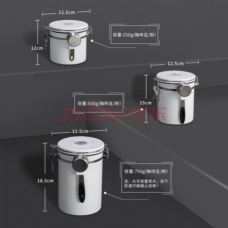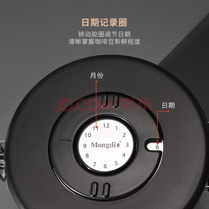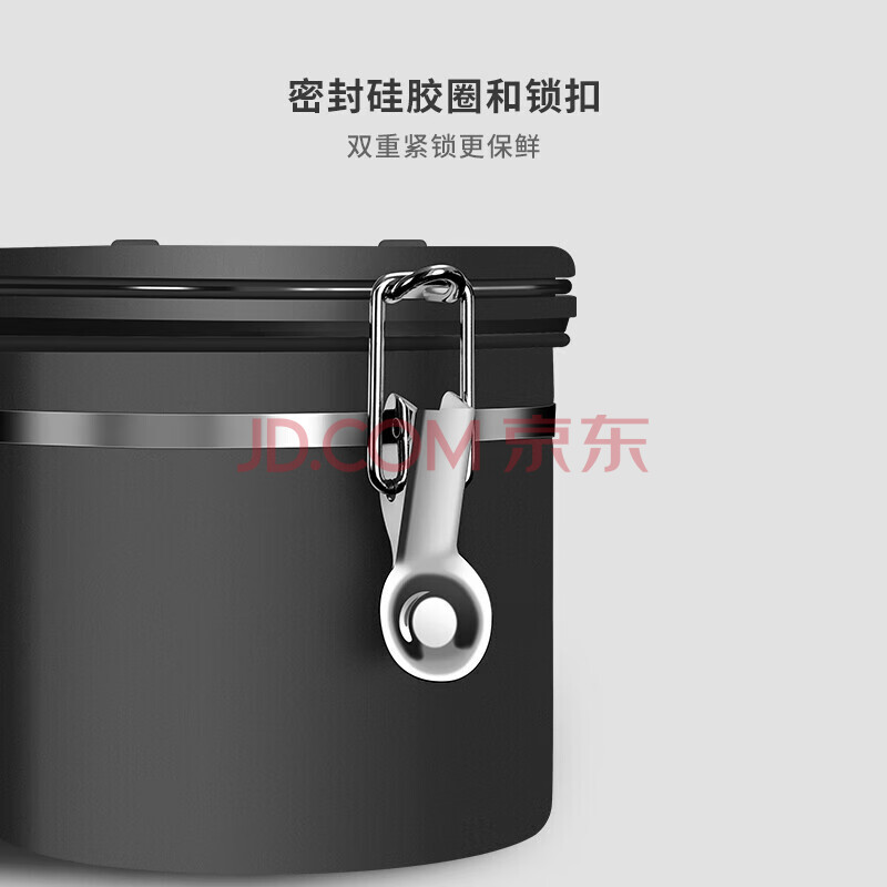 商品相册:Mongdio咖啡豆密封罐304不锈钢咖啡粉保存罐单向排气储物罐含勺第