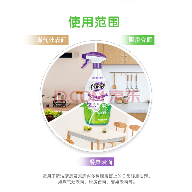 商品相册:妙管家(Magic natural)添加食品用小苏打厨房餐桌清洁剂台面抑菌喷雾400g免过水第