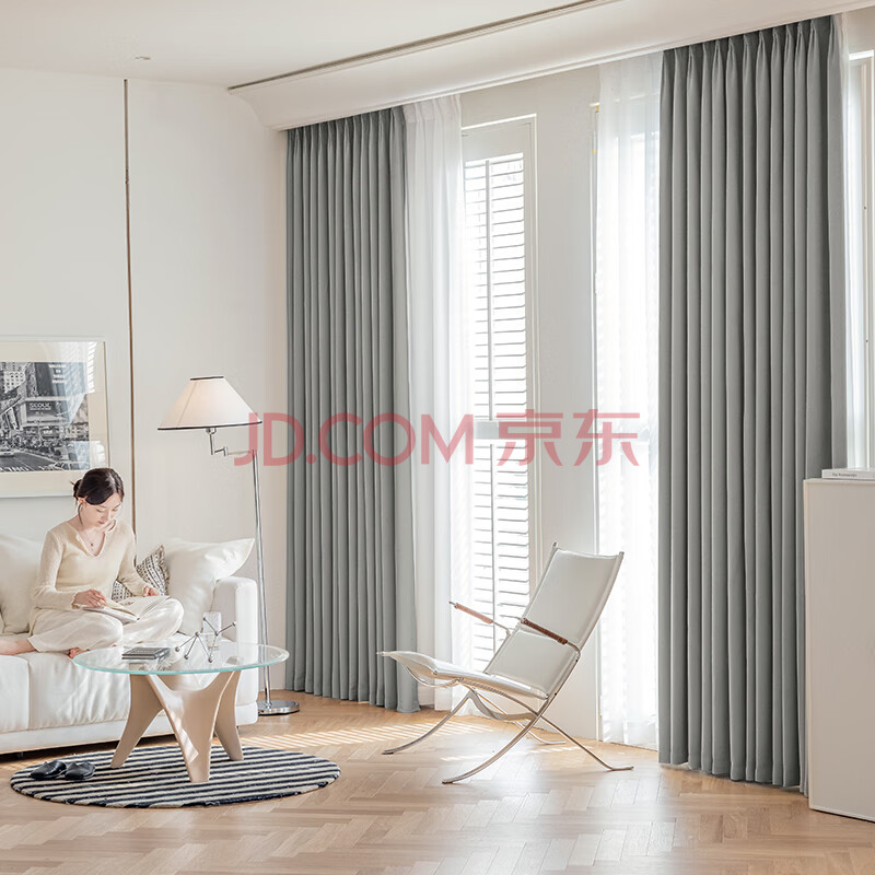 商品相册:阿黎 窗帘高遮光布遮阳帘成品免打孔布拉格挂钩窗帘2.5*2.4第