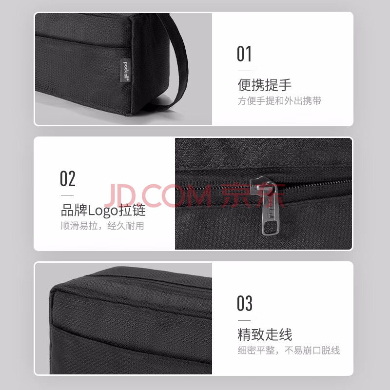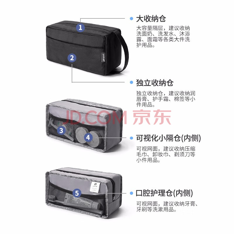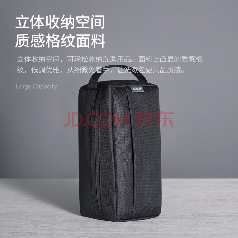 商品相册:pack all男士洗漱包 大容量分隔收纳洗护用品收纳包手提式收纳包 黑色第