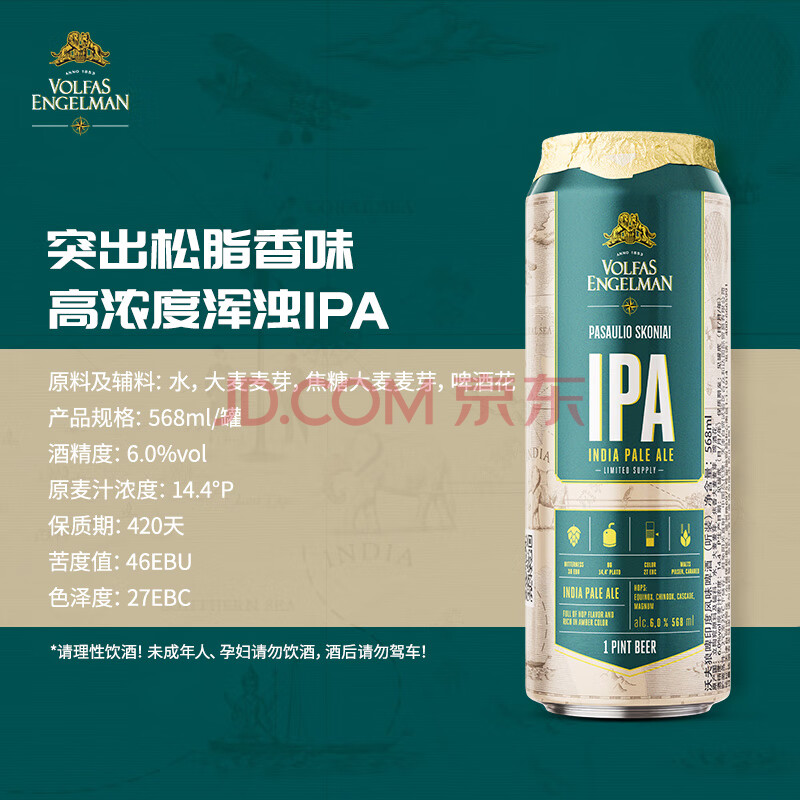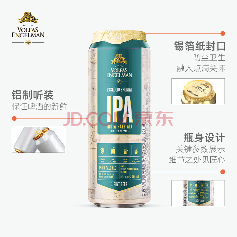 商品相册:沃夫狼IPA精酿啤酒568ml*12听 印度风味进口精酿啤酒箱装礼盒 整箱装第