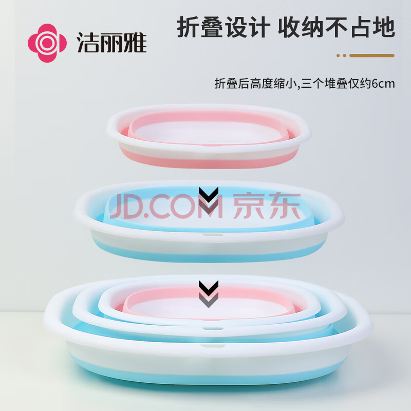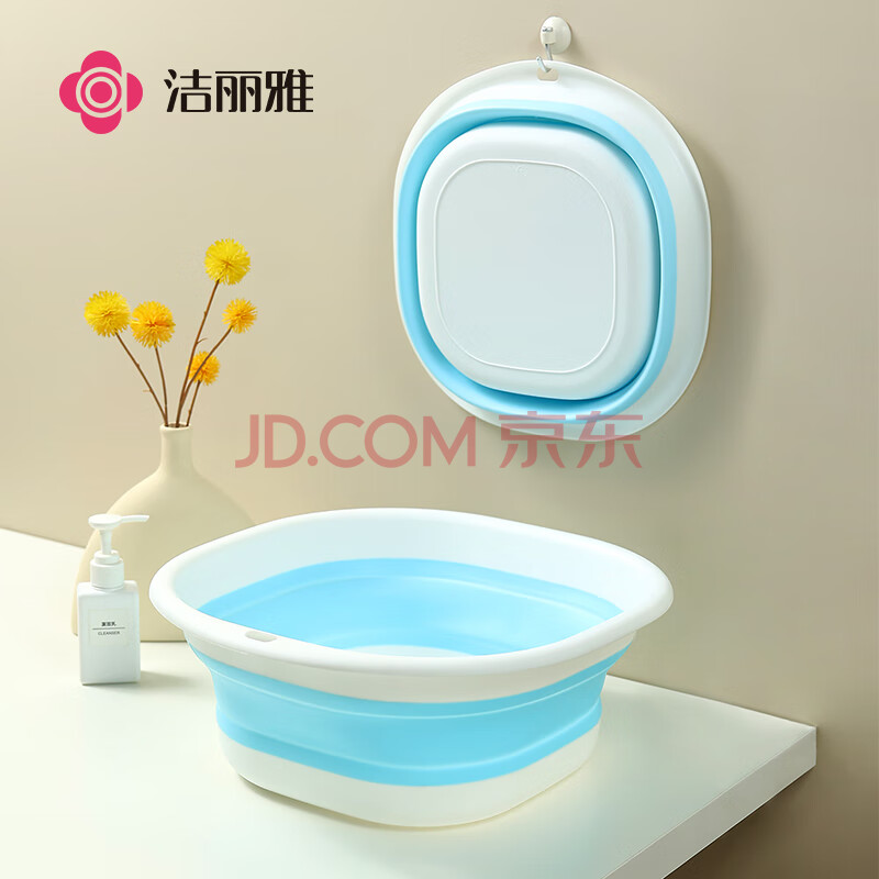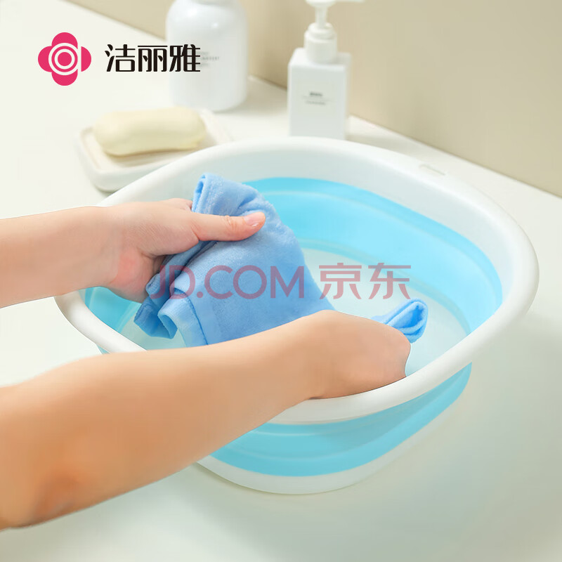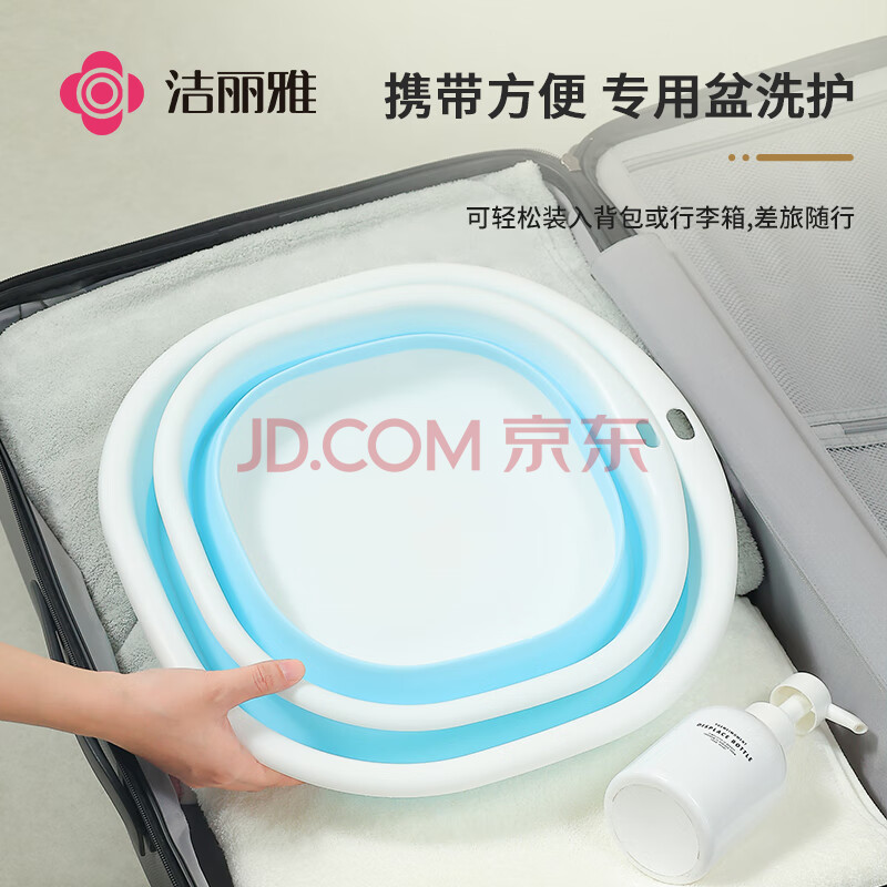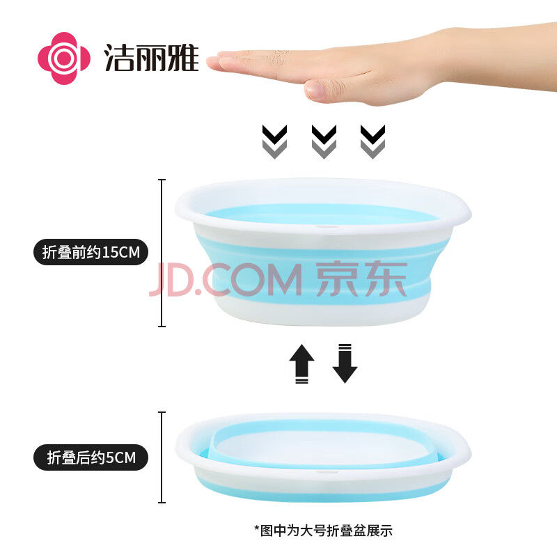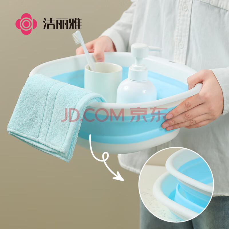 商品相册:洁丽雅旅行折叠盆洗脸盆出差家用宿舍便携式旅游水盆泡脚北欧蓝-中号第