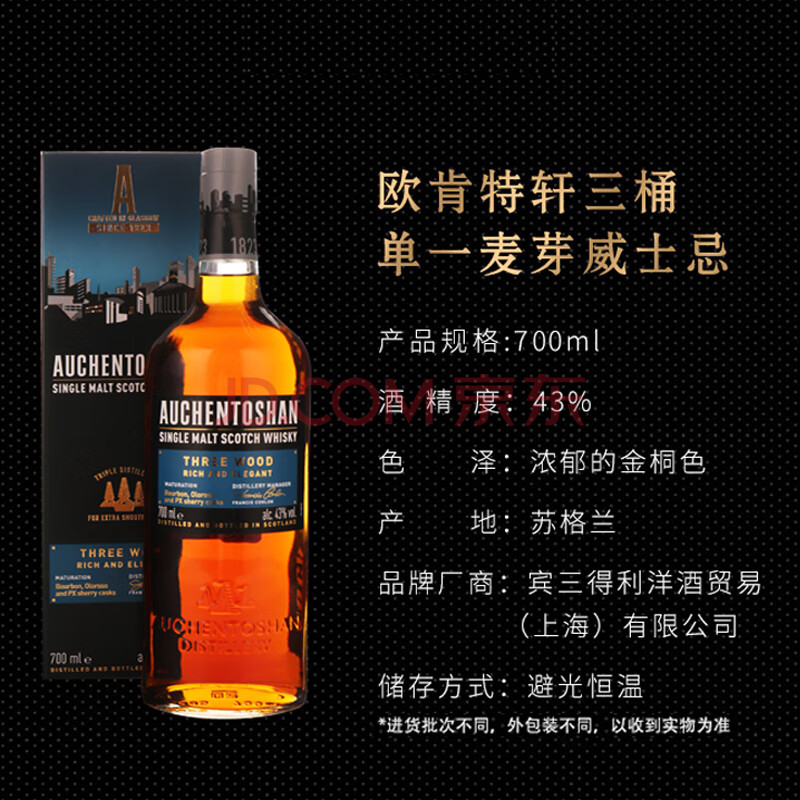 商品相册:欧肯特轩三桶 苏格兰 低地 单一麦芽 威士忌 洋酒 700ml 礼盒第