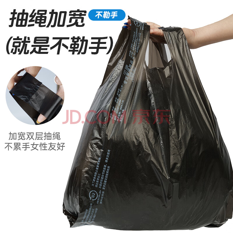 商品相册:本迪背心垃圾袋黑色32*52CM*100只1.5丝加厚免撕款厨房手提塑料袋桶第