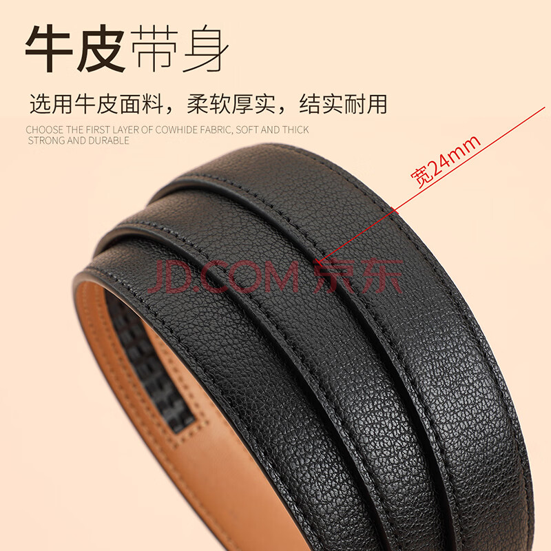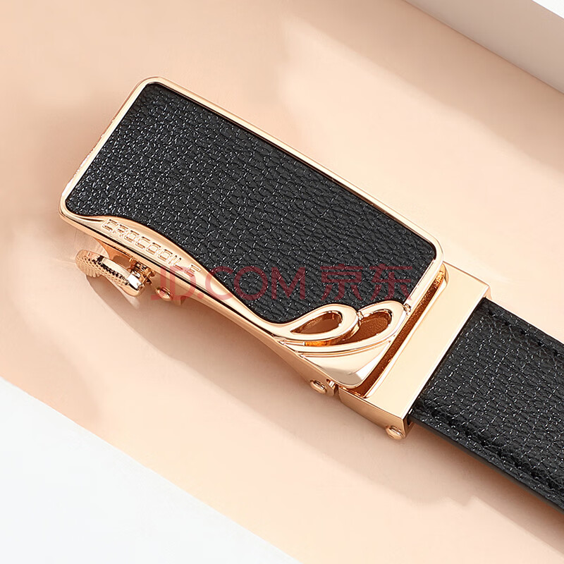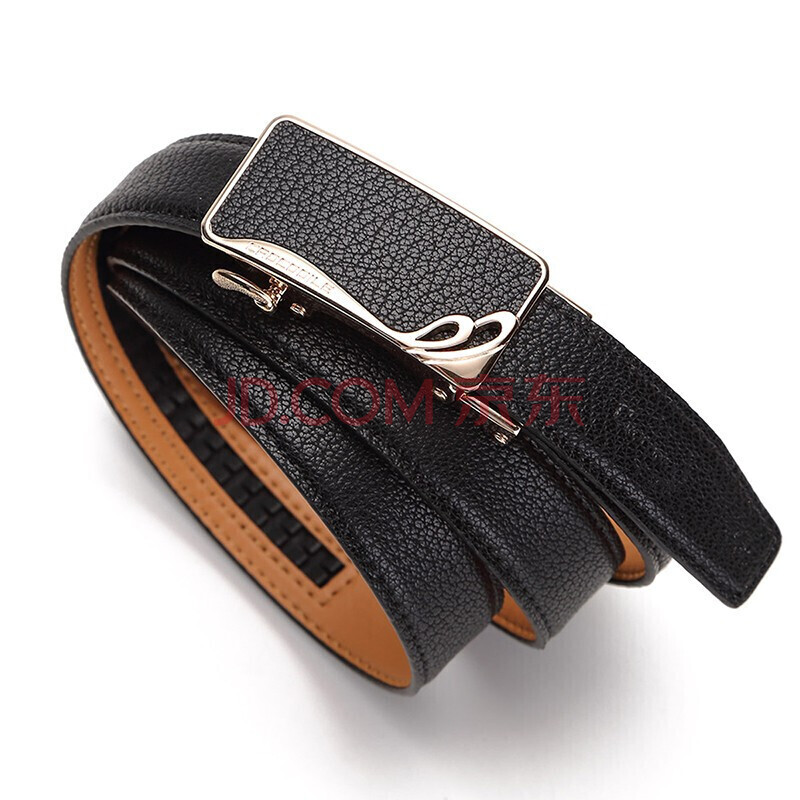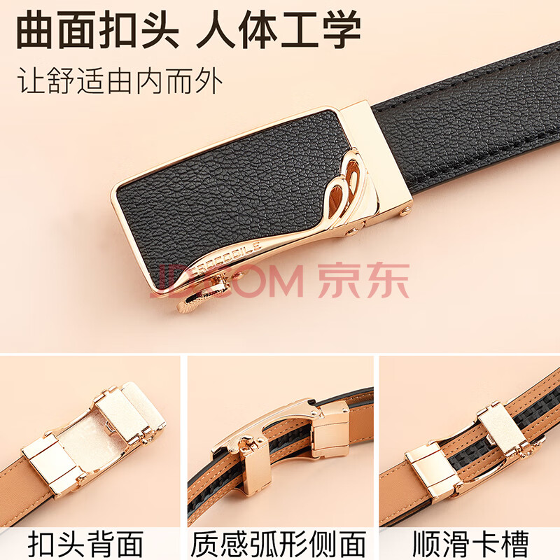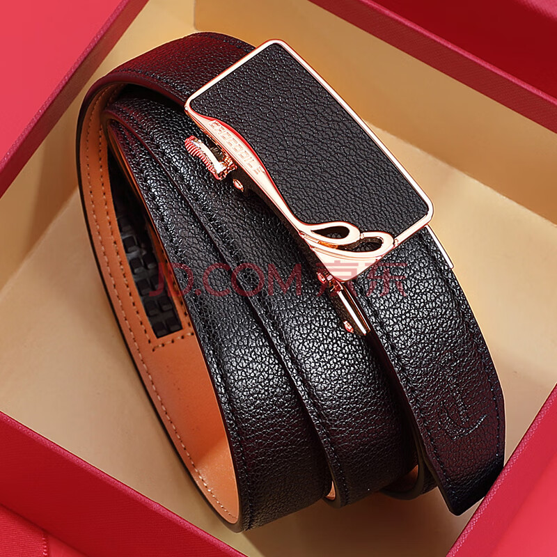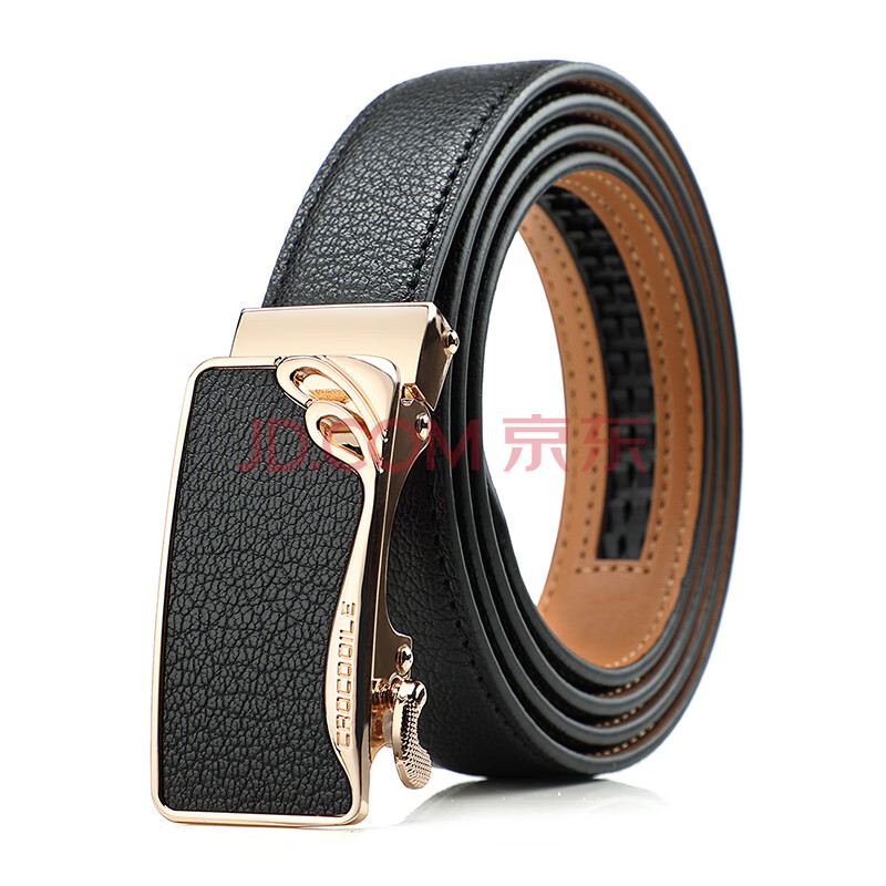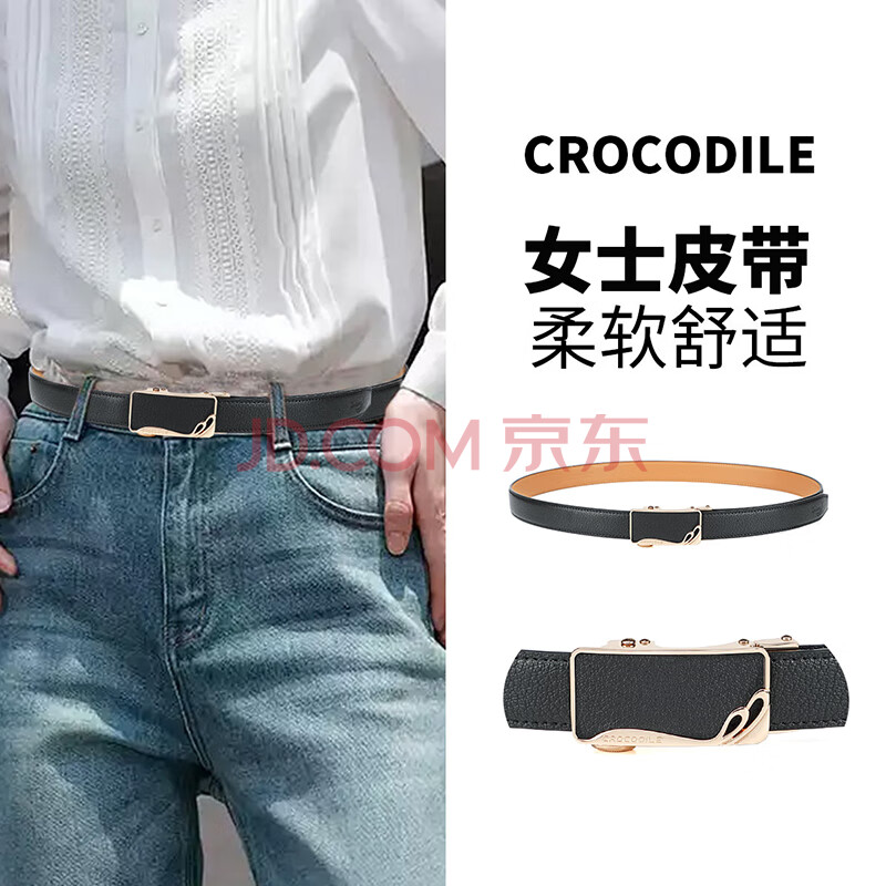 商品相册:鳄鱼恤女士皮带简约牛皮自动扣腰带生日礼物送女友礼盒装2001黑色第
