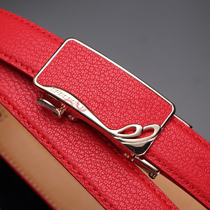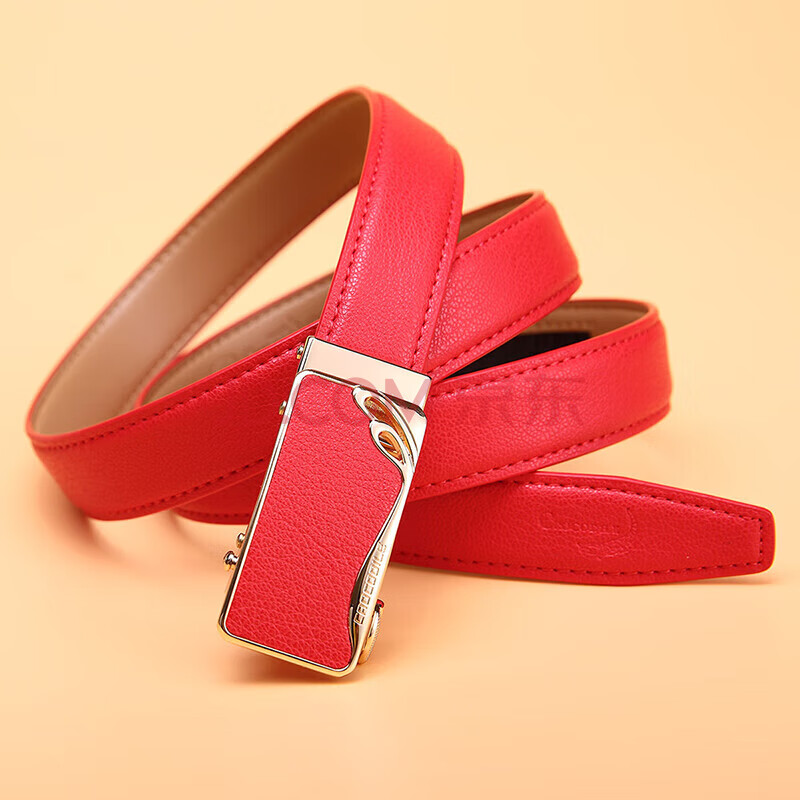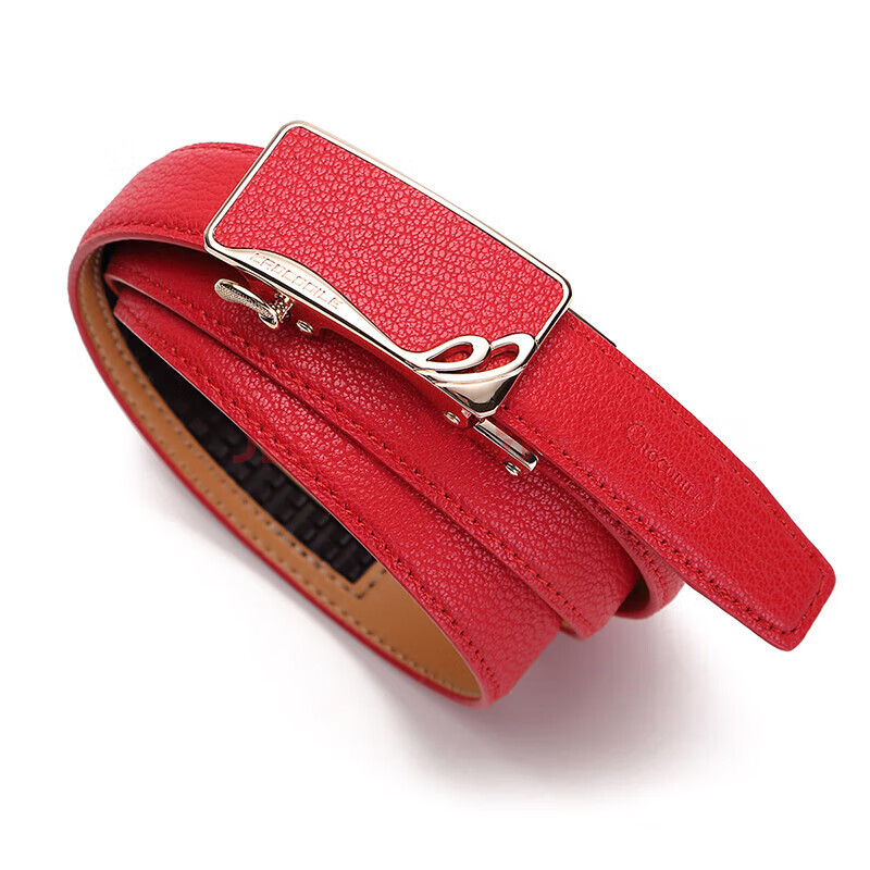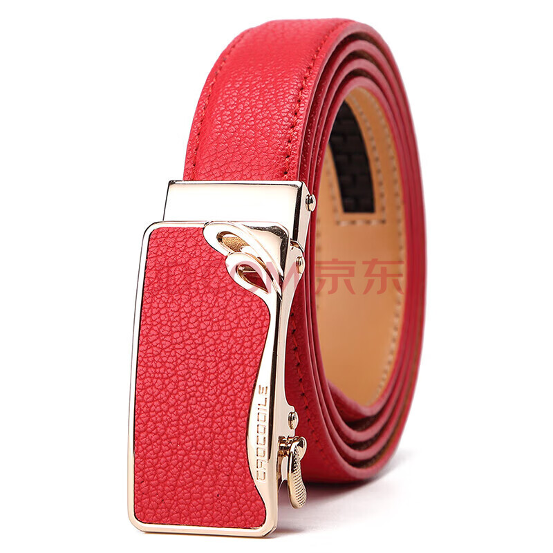 商品相册:鳄鱼恤本命年女士皮带简约牛皮自动扣腰带生日礼物送女友2001红色第