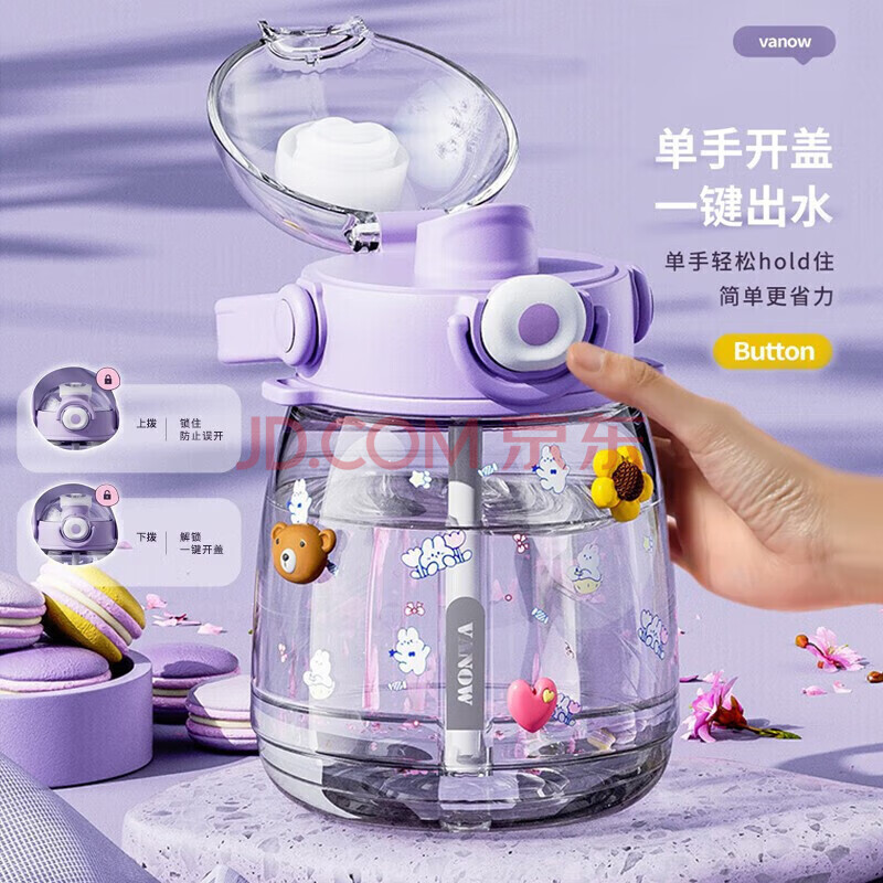 商品相册:Vanow大肚杯大容量水杯女高颜值吸管杯子儿童学生便携运动水杯壶塑料杯第