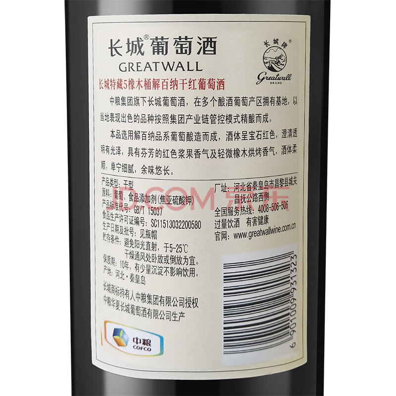 商品相册:长城特藏5橡木桶解百纳干红葡萄酒750ml*6瓶整箱装红酒热门商品第