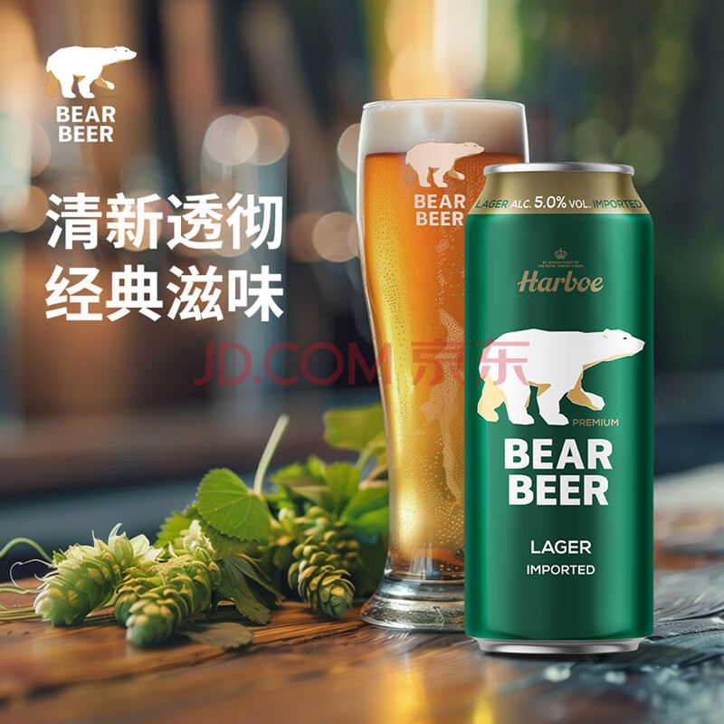 商品相册:豪铂熊(BearBeer)德国精酿拉格啤酒500ml*24听 整箱装 京东自营 春日聚会畅饮第