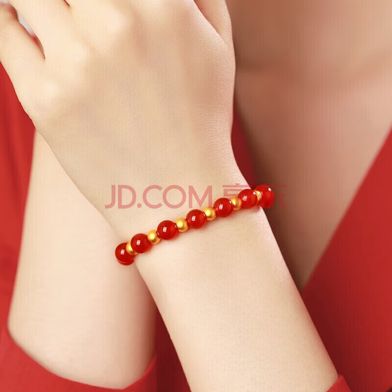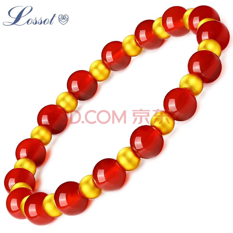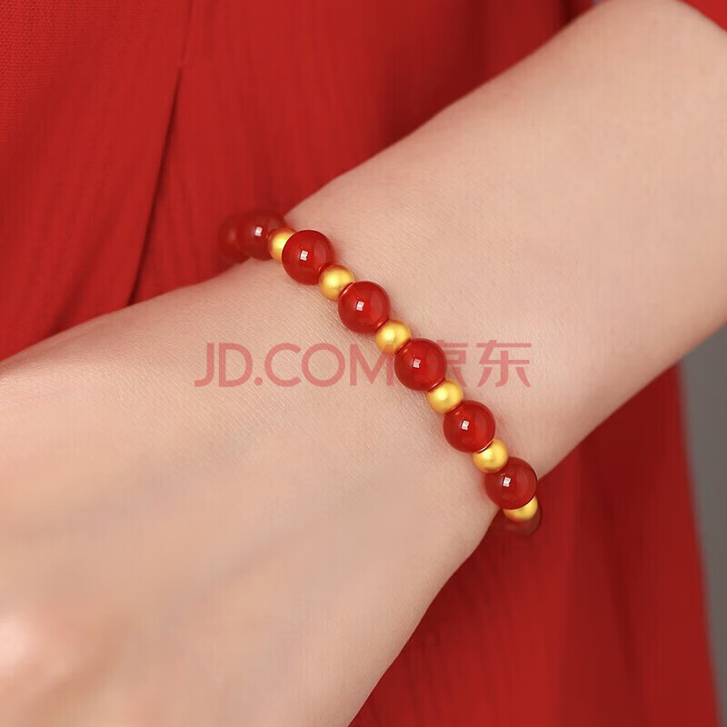 商品相册:Lossot圆圆满满足金黄金转运珠手链女3D金古法金珠红玛瑙手串生日礼物第