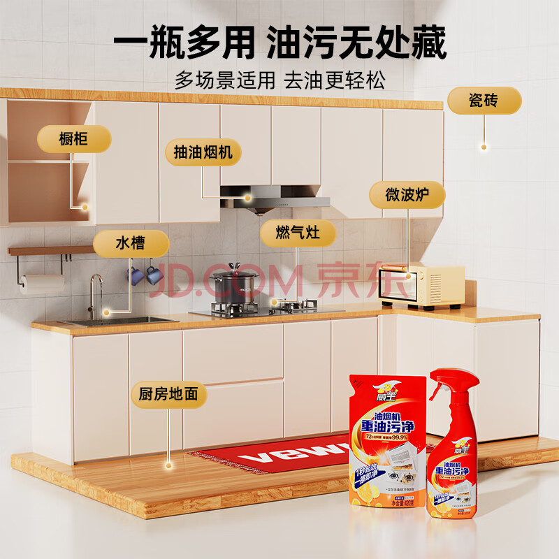 商品相册:威王重油污清洁剂500g*2+420g*3 除菌抑菌油污净油烟机清洗剂家庭清洁第
