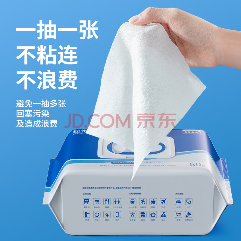 商品相册:粒米75%酒精消毒湿巾80片*4大包杀菌卫生湿巾棉片甲流感灭菌率99.9%第