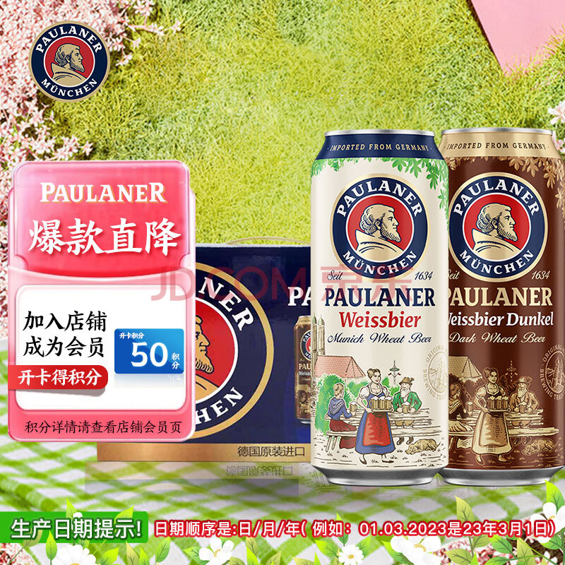 商品相册:保拉纳(Paulaner)柏龙 混合小麦啤 500ml*12听 黑白组合装 德国进口啤酒踏春送礼第