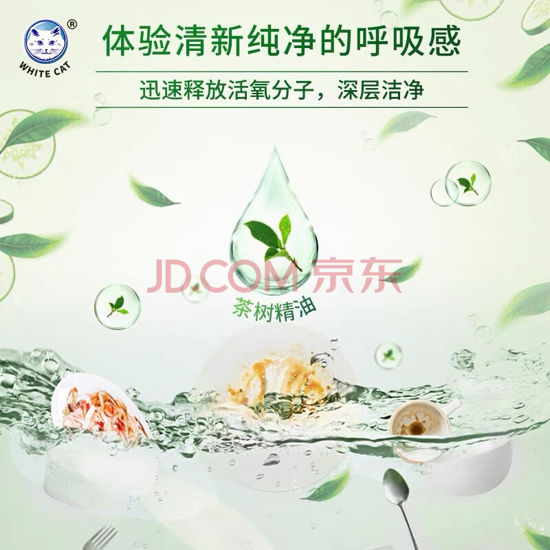 商品相册:白猫 活氧去油洗洁精1.15kg 除菌率99.9%食品用去农残 青瓜茶树香型第