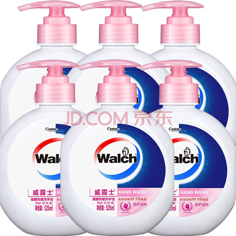 商品相册:威露士(Walch)健康抑菌99.9%*洗手液成人儿童通用525ml*6瓶 倍护滋润第