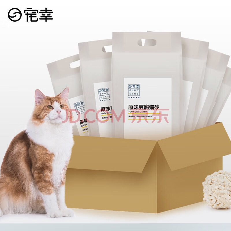 商品相册:宠幸 升级2mm原味豆腐猫砂2.7kg*6 纯豆腐可冲厕所 除臭低尘猫砂第
