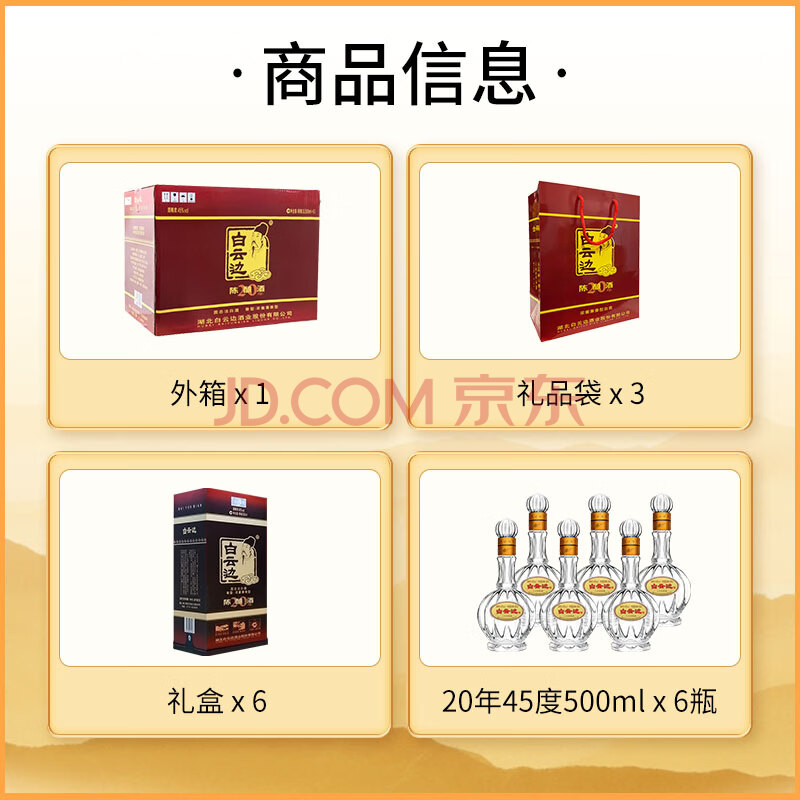 商品相册:白云边二十年陈酿 浓酱兼香型白酒 45度 500ml*6瓶 整箱装【热卖白酒】第
