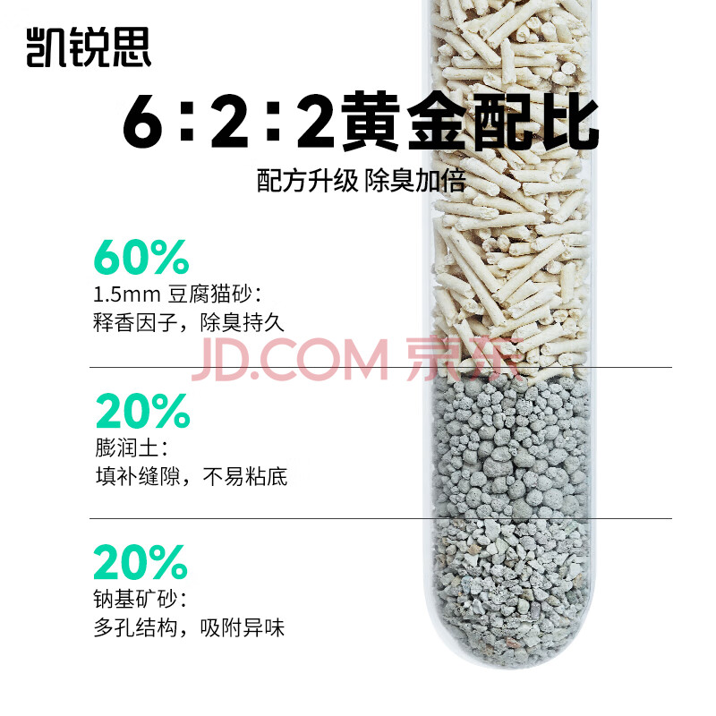 商品相册:凯锐思豆腐混合猫砂2.5kg*4除臭结团不粘底豆腐猫砂添加矿砂强吸水第