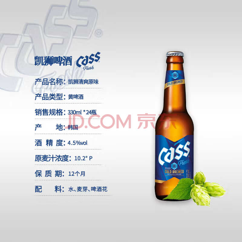 商品相册:凯狮(CASS)啤酒 330ml*24瓶 清爽 4.5度 韩国啤酒 原味 玻璃瓶 露营聚会第