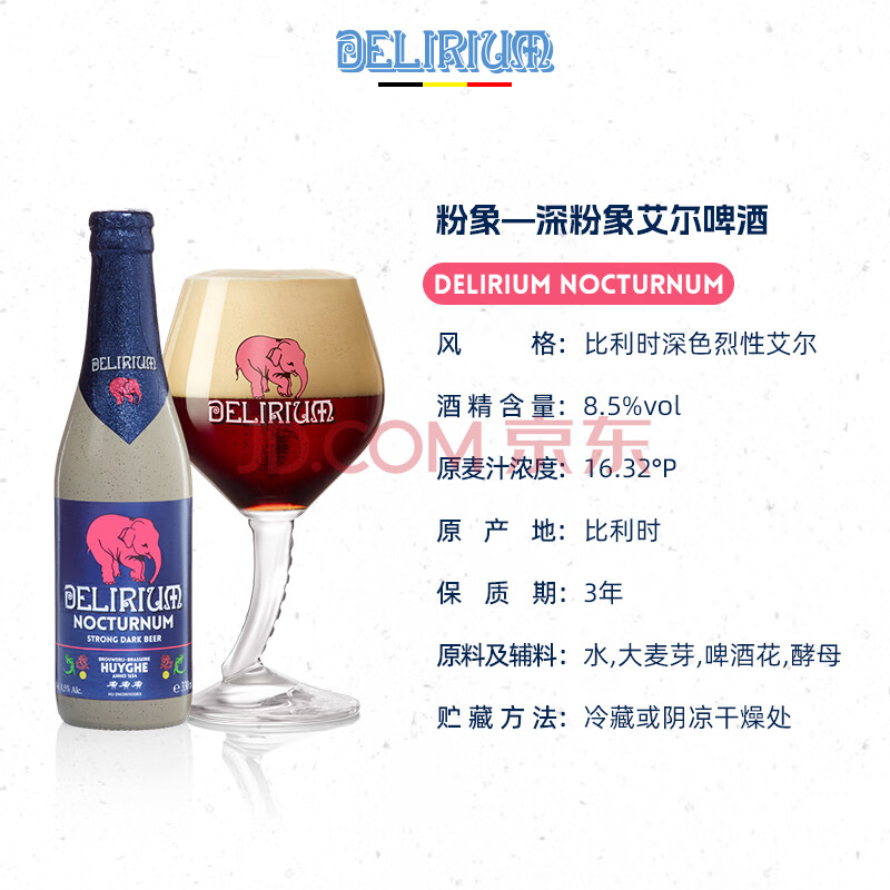 商品相册:粉象(Delirium)深粉象啤酒 330ml*6瓶 比利时进口 精酿啤酒 露营聚会 京东自营第