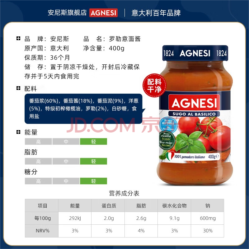 商品相册:安尼斯罗勒意大利面酱400g意大利原装进口意面酱番茄酱披萨酱意面调料第