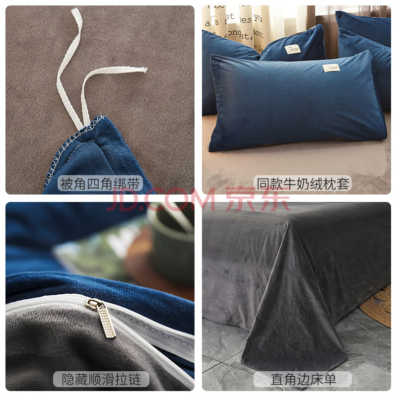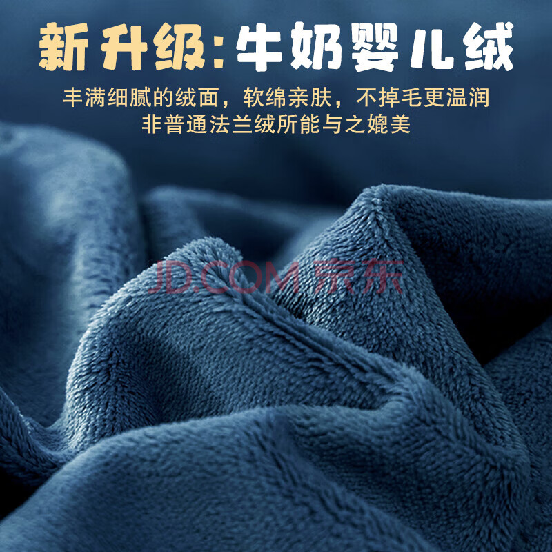 商品相册:恒源祥牛奶绒秋冬四件套1.5/1.8米床单被套200*230cm蓝色水晶绒第