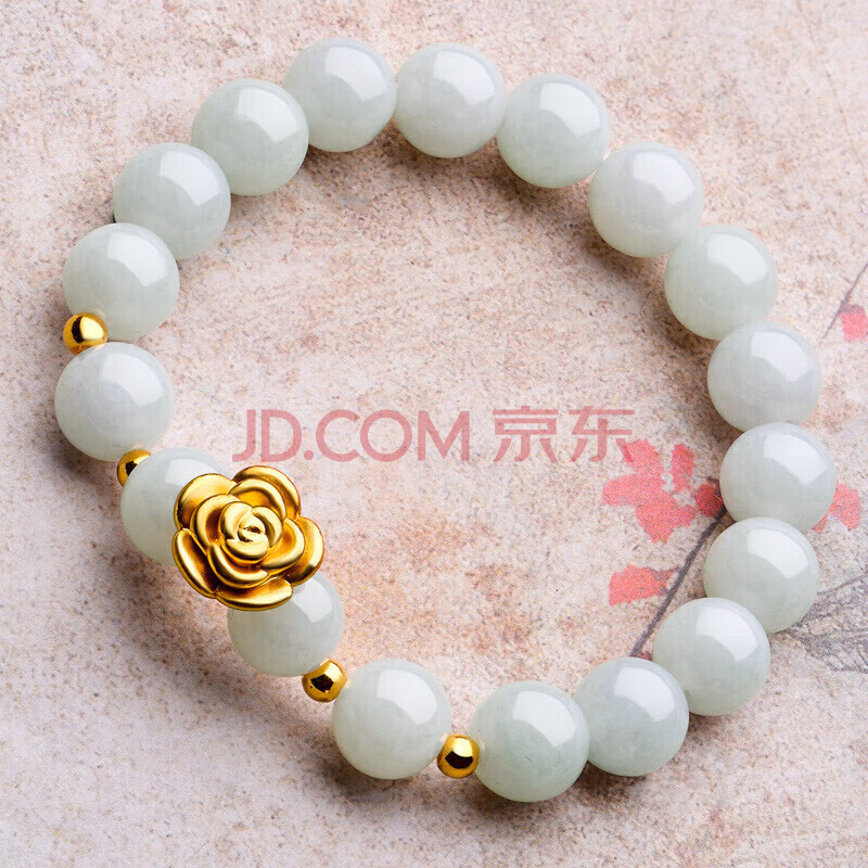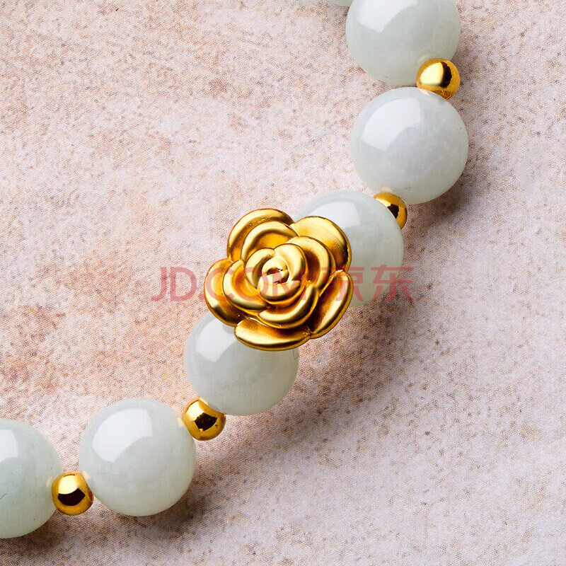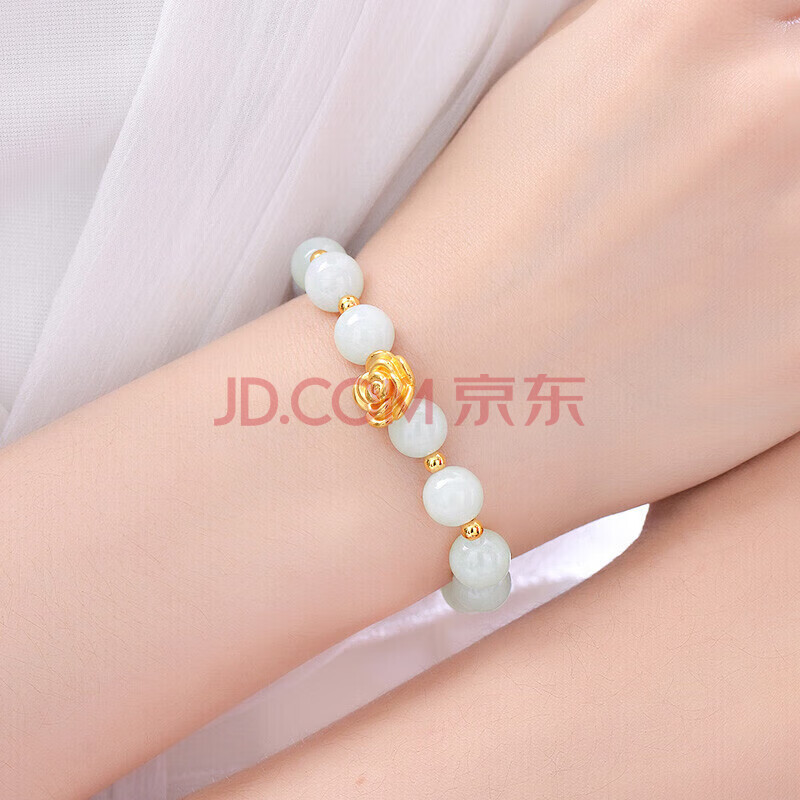 商品相册:蒂蔻(Tico)足金玫瑰花黄金手链女3D硬金转运珠翡翠手串饰品送老婆生日礼物第