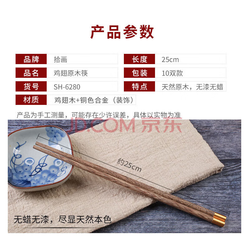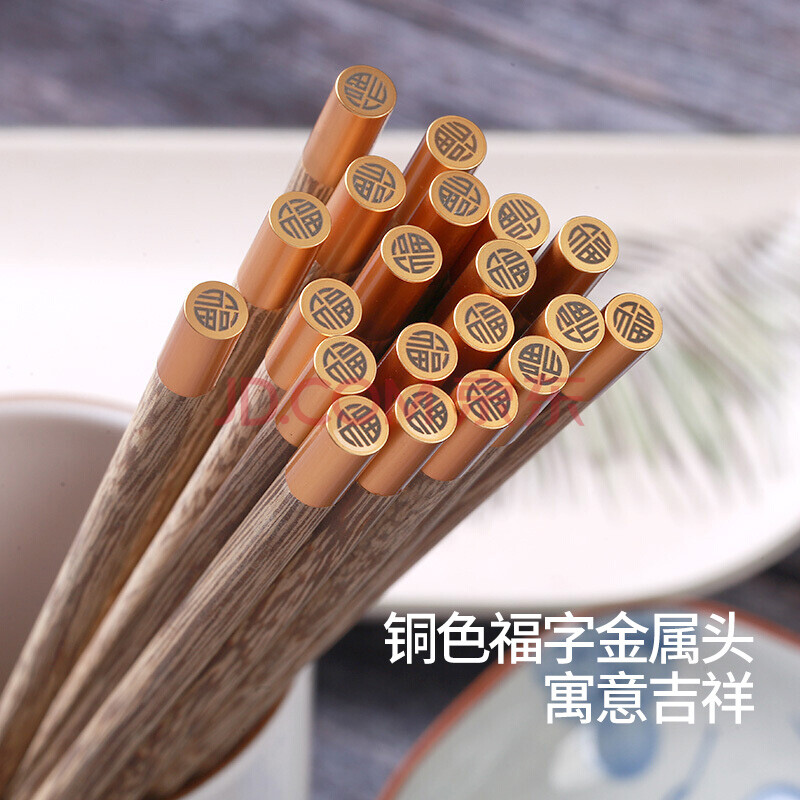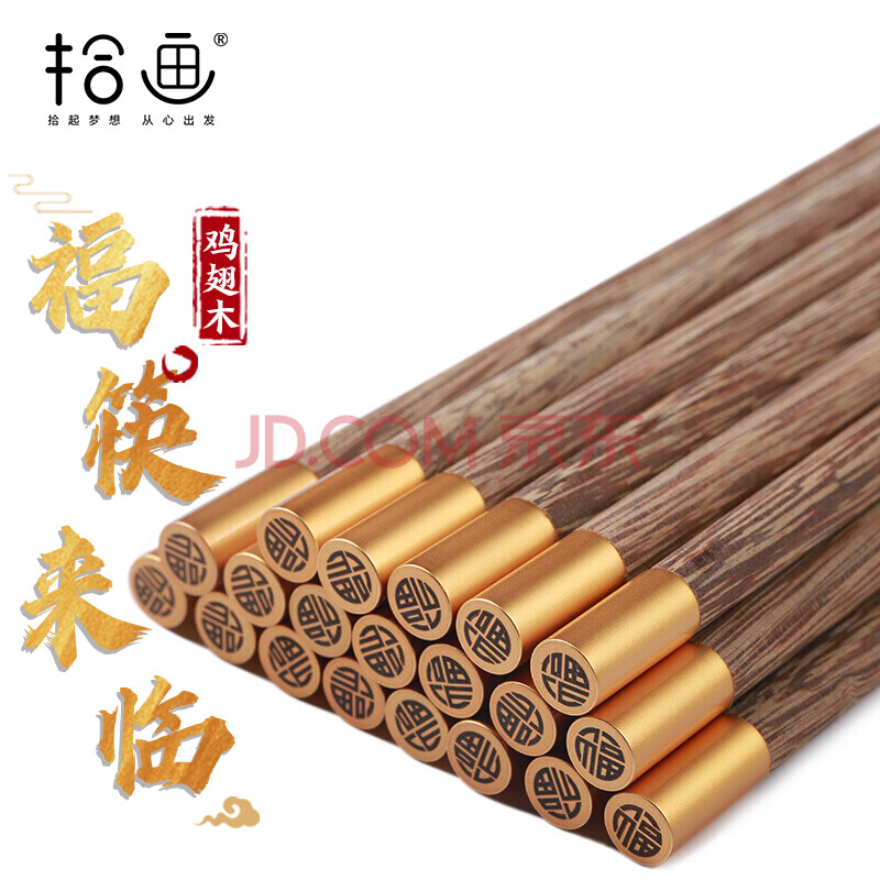 商品相册:拾画 鸡翅木筷子实用高档家庭酒店筷子10双装 圆顶金福款25cm SH-6280第