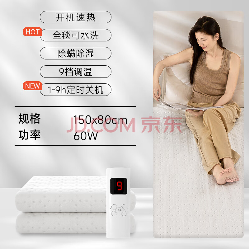 商品相册:琴岛【高温断电 安全不起火】单人学生宿舍除螨电热毯电褥子1.5*0.8m第