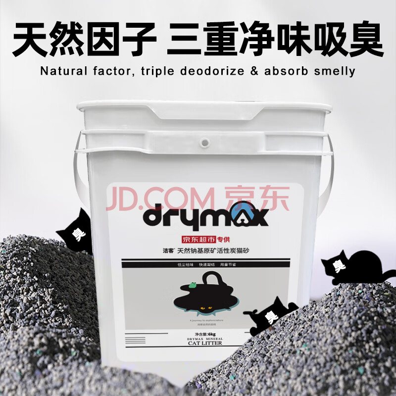 商品相册:洁客(Drymax)专享款钠基原矿高效除臭活性碳猫砂6kg第