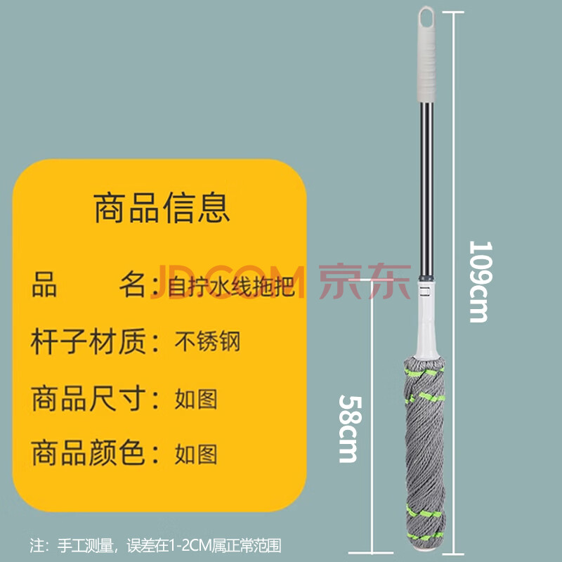 商品相册:梦庭 自拧水拖把 1布1套 45cm旋转拧水拖把纤维布免手洗墩布拖布拖地第
