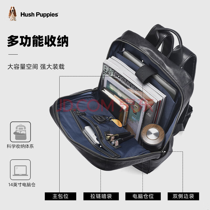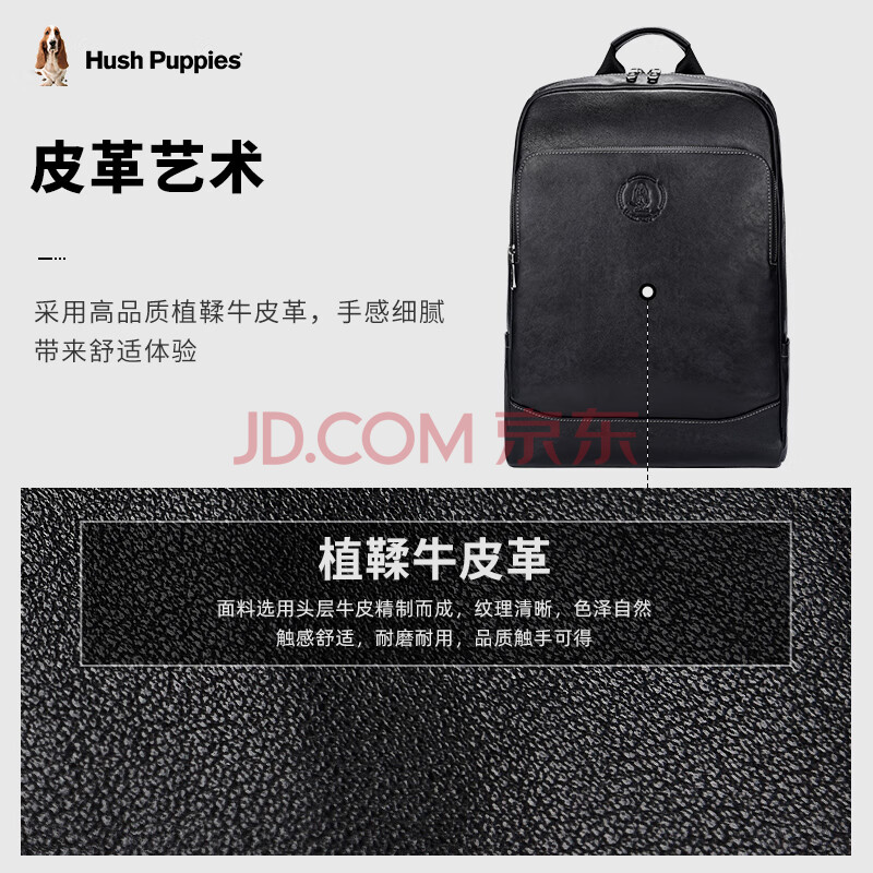 商品相册:暇步士(Hush Puppies)双肩包男休闲商务背书包植鞣牛皮男包大容量旅行电脑包生日礼物第