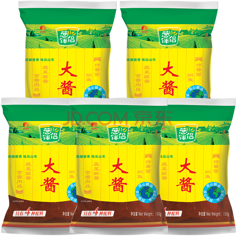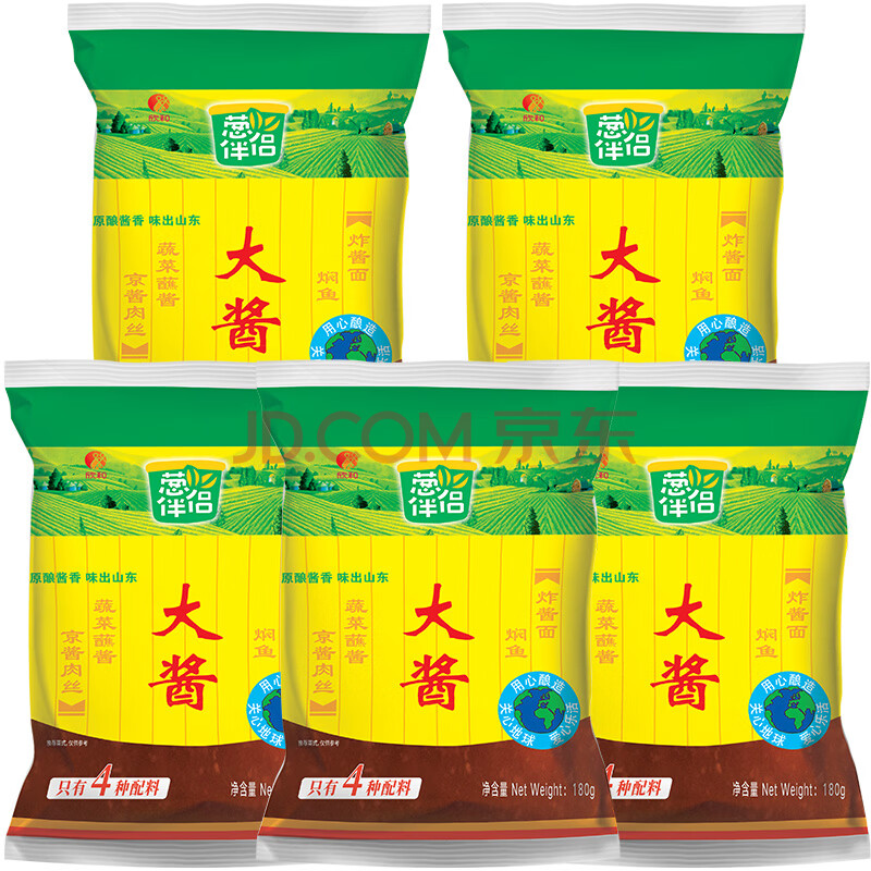 商品相册:葱伴侣大酱180g*5袋【黄豆酱】豆瓣酱调味品0%添加防腐剂炸酱面欣和出品第