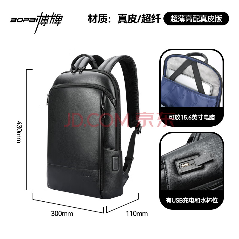 商品相册:博牌超薄双肩包男头层牛皮背包商务16英寸电脑包旅行书包节日礼物第