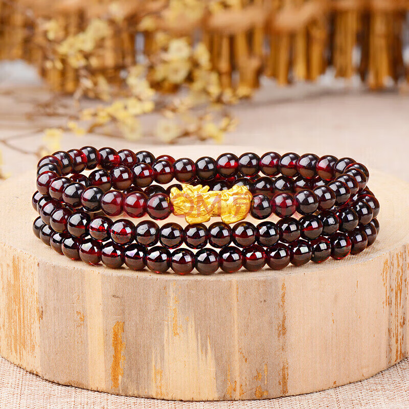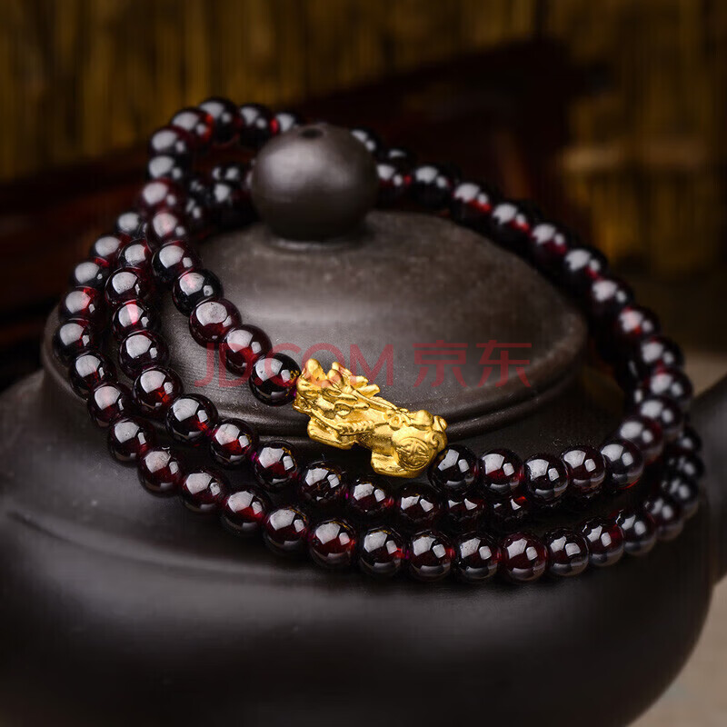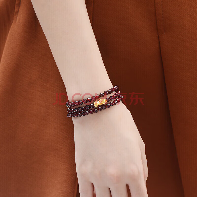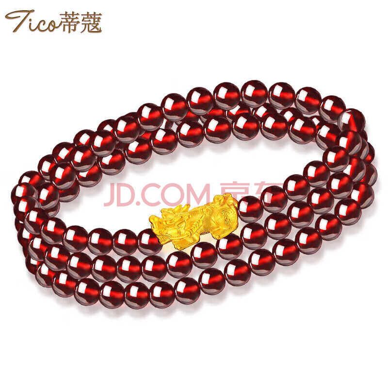 商品相册:蒂蔻(Tico)足金招财貔貅黄金手链女3D硬金转运珠三圈石榴石手串生日礼物第