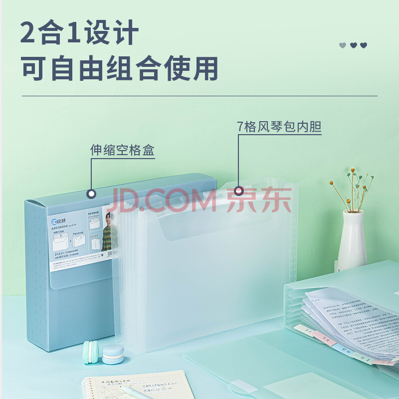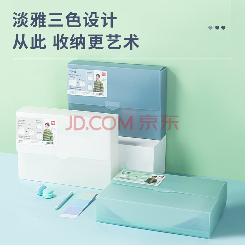 商品相册:得力(deli)72770 源源得力多功能文件收纳盒 可伸缩空格盒资料盒档案办公室储物盒粘扣风琴包 蓝色 6个装第